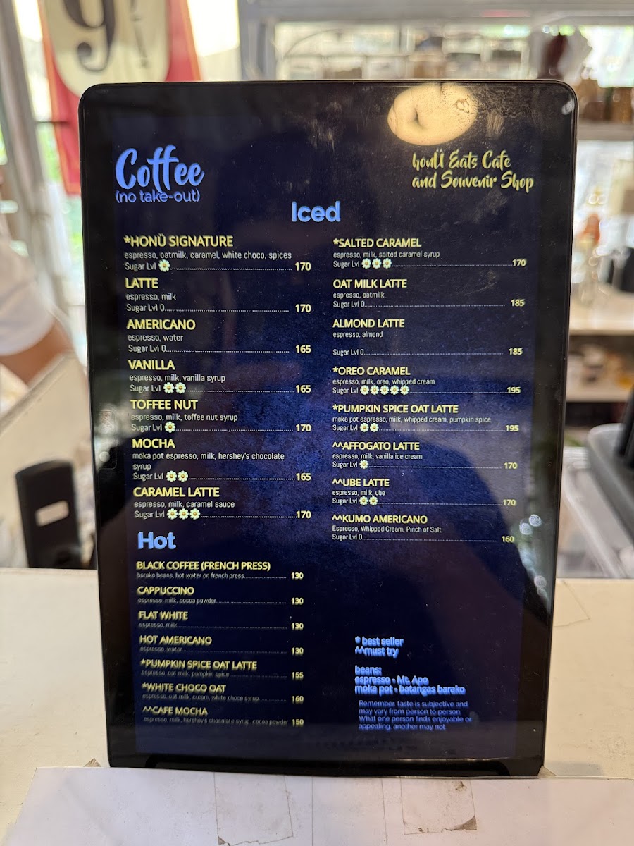 The menu at Honü Eats Cafe is a delightful mix of experiences. Indulge in their famed Bakunawa Tale smoothie bowl, generously topped to ensure every bite is flavorful. The offerings go beyond just food; the cafe embraces artistic souls with books, tarot cards, and a touch of creativity throughout its decor.